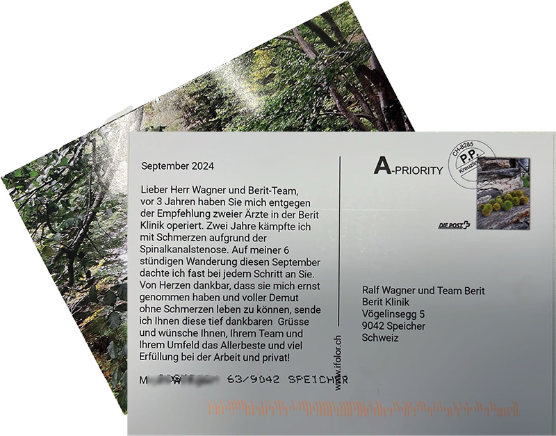 In den Fällen wo das möglich ist, sollten IMHO die OP-Methoden die Dr. Wagner auch mit weiterentwickelt zum Medizinischen Goldstandart werden. Auch wenn es mir wegen weiterer Rückenprobleme seit Jahrzehnten immer noch nicht "gut" geht, so verdanke ich Herrn Dr. Wagner meine Selbständigkeit. Herzlichen Dank!“